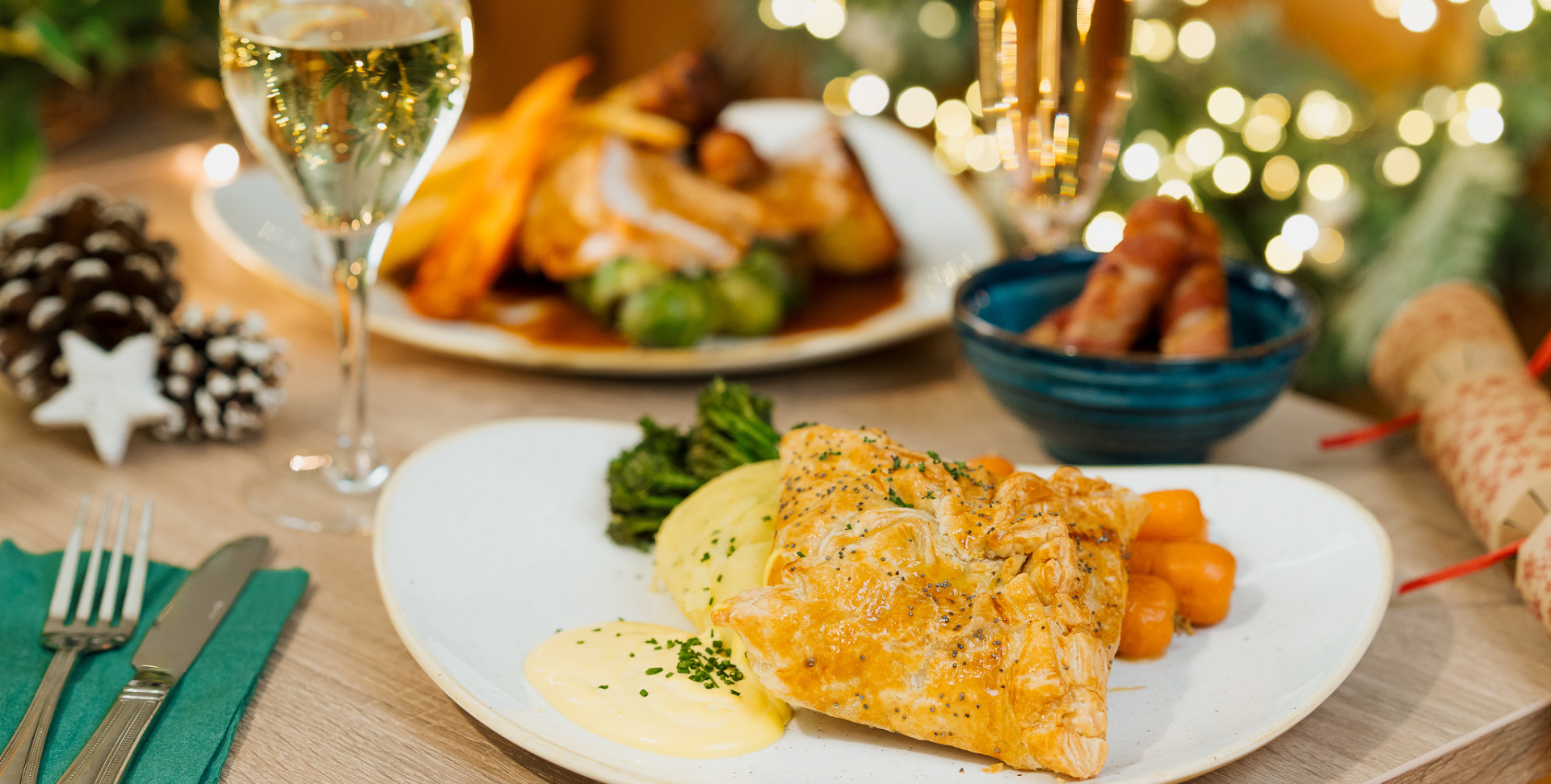 Boxing Day calls for delicious food and relaxing company. Our set menu has scrumptious options such as our comforting British Steak & Malbec Pie or creamy Salmon en Croûte. Enjoy seasonal flavours like our Garlic & Cheddar baked Mushrooms starter or Apple & Cherry Crumble dessert.